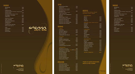 Gabana Café Bar / Carta Díptico A3 vertical / Septiembre 2013