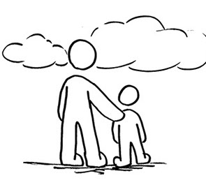 Dibujo a mano alzada con rotulador negro grueso.